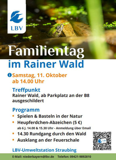 Der LBV lädt herzlich ein zum Familientag im Rainer Wald – ein Nachmittag voller Naturerlebnisse für Groß und Klein!